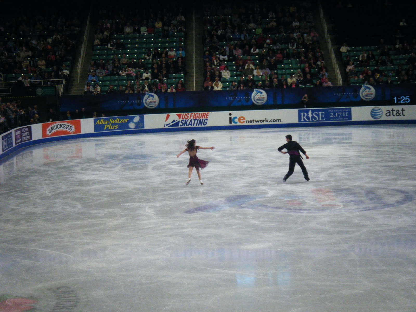 This past weekend the national figure skating championships were held in Greensboro, NC. We got tickets to see the pairs skating and ice dancing. Our seats were right next to the kiss and cry area where the skaters go after they are finished to wait for their scores. We love to watch the cameramen with all their sly maneuvers and feigned boredom. I also got a good sense of where all the cameras were so that when I watched it on television I knew precisely how it was shot. This is what I consider fun, a little weird?